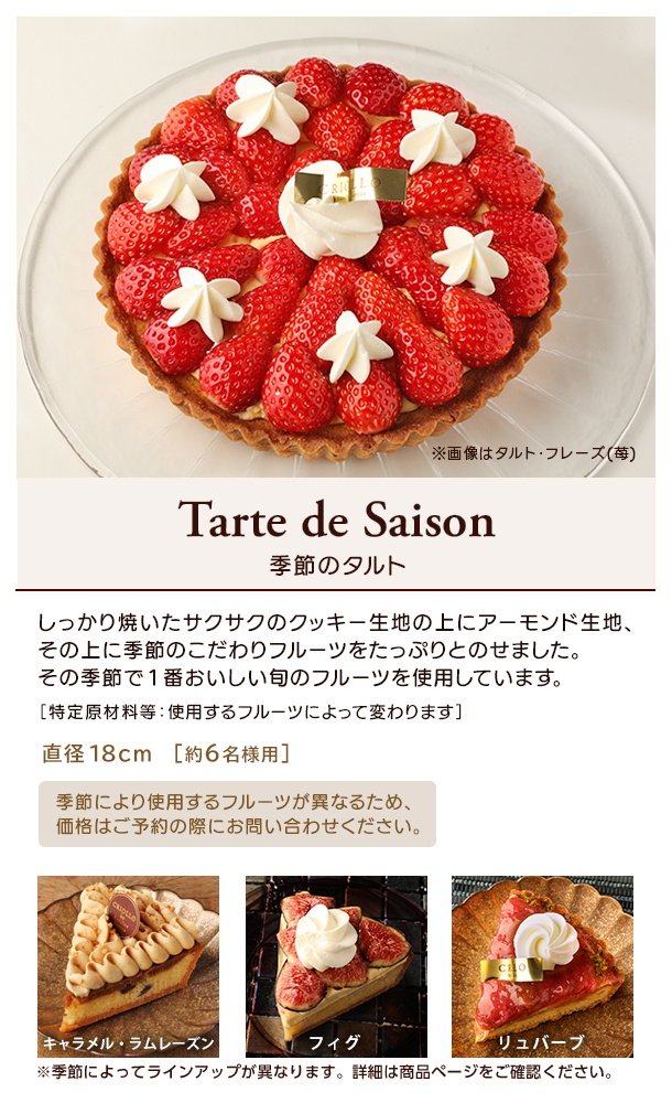 ※オンライン予約からは、掲載されているケーキへのご相談は承れません。ご不明点やご希望がございます際は、受取店舗へお電話で直接お問い合わせ・ご予約をお願いいたします。(各店舗情報はこのページを下までスクロールするとご覧いただけます。)