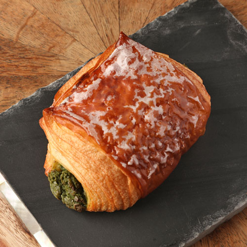 ¥460(税込)パリッとクロワッサン生地に抹茶のチーズケーキ入り。今だけの限定味です!