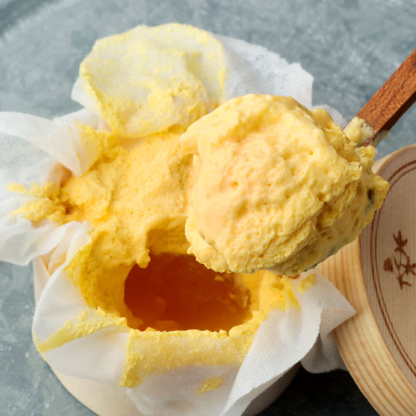 ¥500(税込)北海道美瑛のジャージー牛乳を使用してコクがあるプリンに仕上げました。口どけのなめらかさはサントスシェフの自慢。