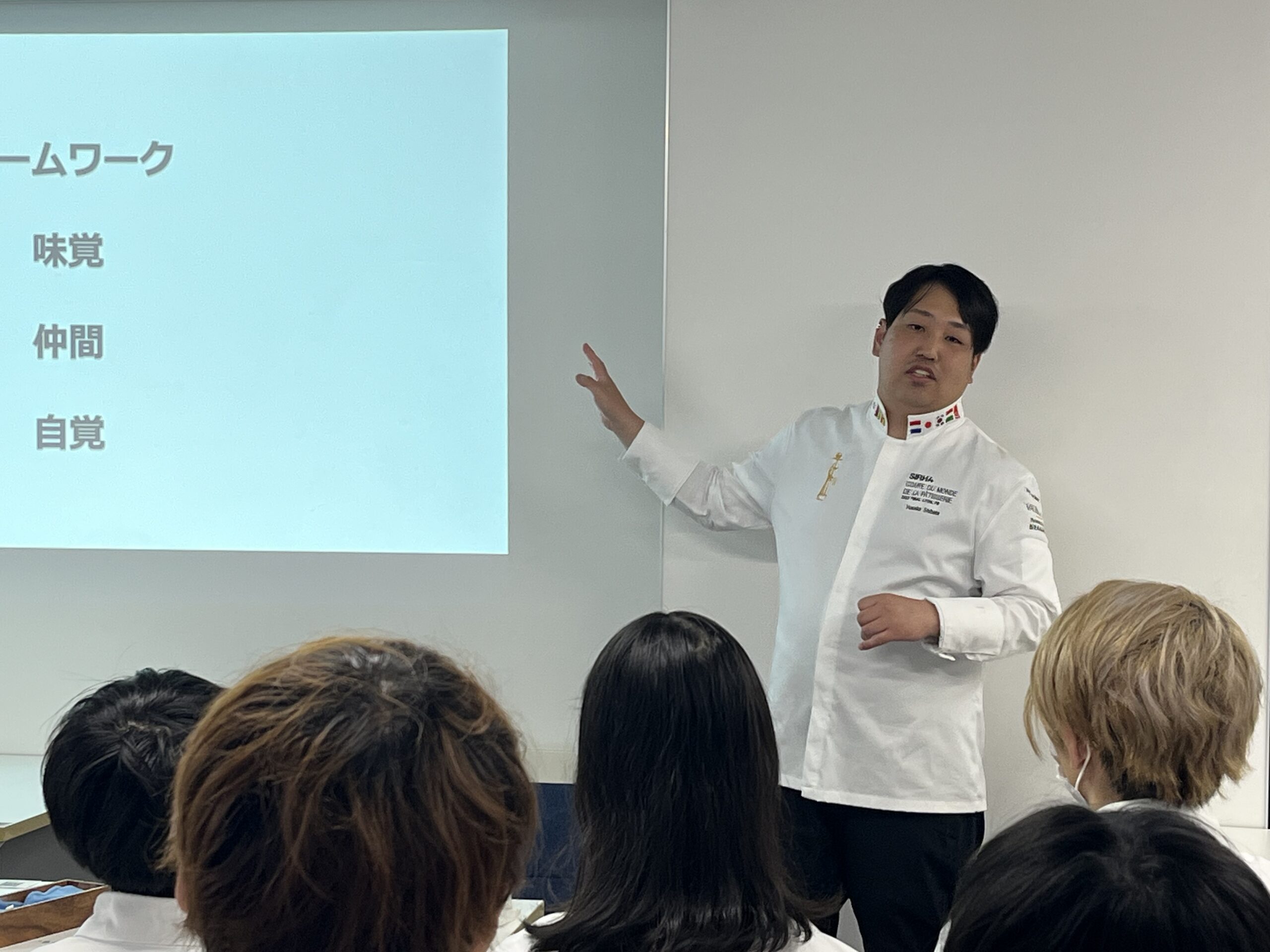 そして、クリオロアカデミーの一環として、外部講師に来てもらいセミナーを開催する機会も増やしています。先日はクリオロの卒業生でフランスのリヨンで行われた洋菓子の世界大会「クープ・デュ・モンド」で優勝した柴田勇作さんが講師として来てくれました!