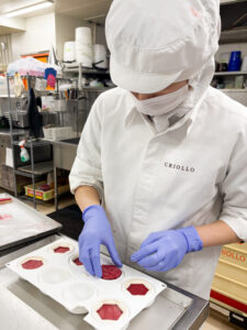 Honoka:ポスト・ショコラ所属で主にチョコレートを使ったお菓子の仕込みをしています。ボンボンショコラはもちろん、クリオロで人気のあるトレゾーやディスカバリーシリーズの製造も担当しています。