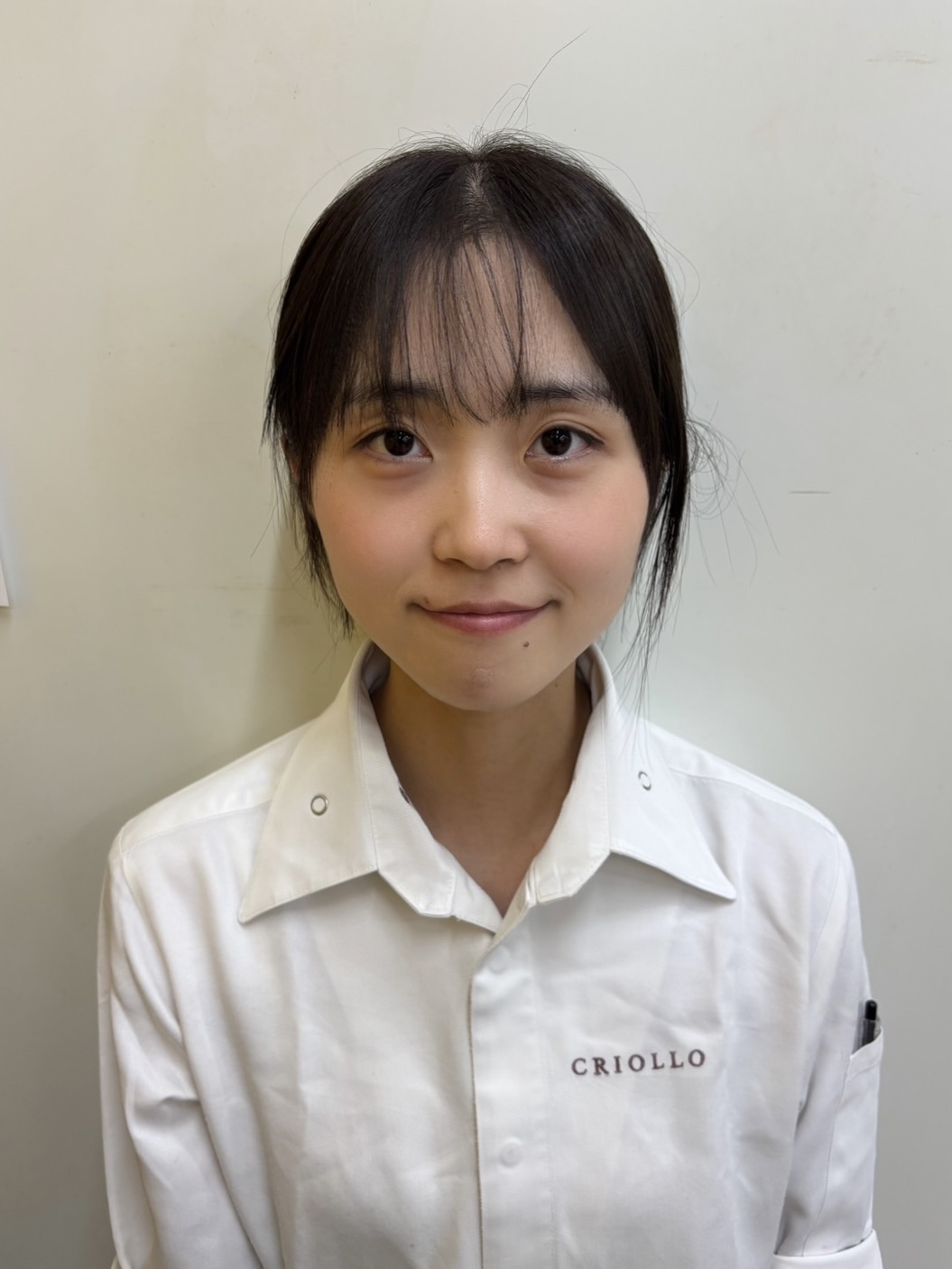 Momo:私はフランスの専門学校を卒業しました。フランスで製菓と言語を同時に学ぶ中で、自分の長所を活かせるお菓子屋さんで働きたいと思うようになりました。沢山のお店のケーキを食べる中でクリオロのケーキの美味しさにとても感動し、ここのケーキを作りたい!と思い、クリオロで働く事を決めました。