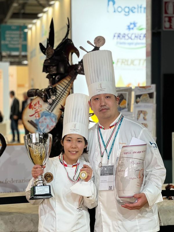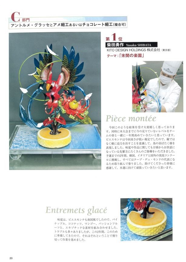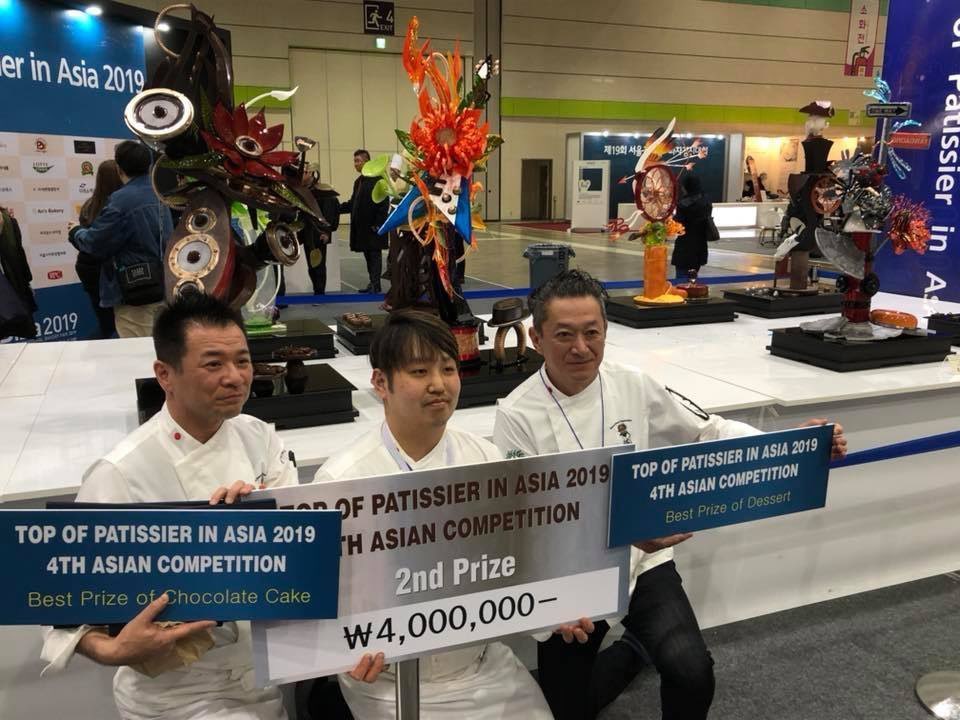 そんな彼ですが、メキメキと頭角を現し、2019年にもトップパティシエインアジアで優勝。下記はジャパンケーキショー「トップ・オブパティシエ」準優勝の写真。