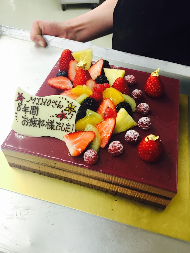 そんな彼女が一番好きなクリオロのケーキは「ニルヴァナ」。卒業の日にシェフが大きなサイズで作ってお別れ会をしたんですよ。「ニルヴァナ」はシェフが世界コンクールで優勝したケーキで、今でもクリオロのベストセラーケーキのひとつです。