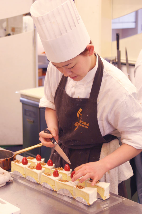 そんな時期に入社したゆきえさんの担当は、菓子学校の運営。シェフのアシスタントとして生徒さんと一緒に授業を担当してくれていて、試作などもシェフと一緒にしていました。