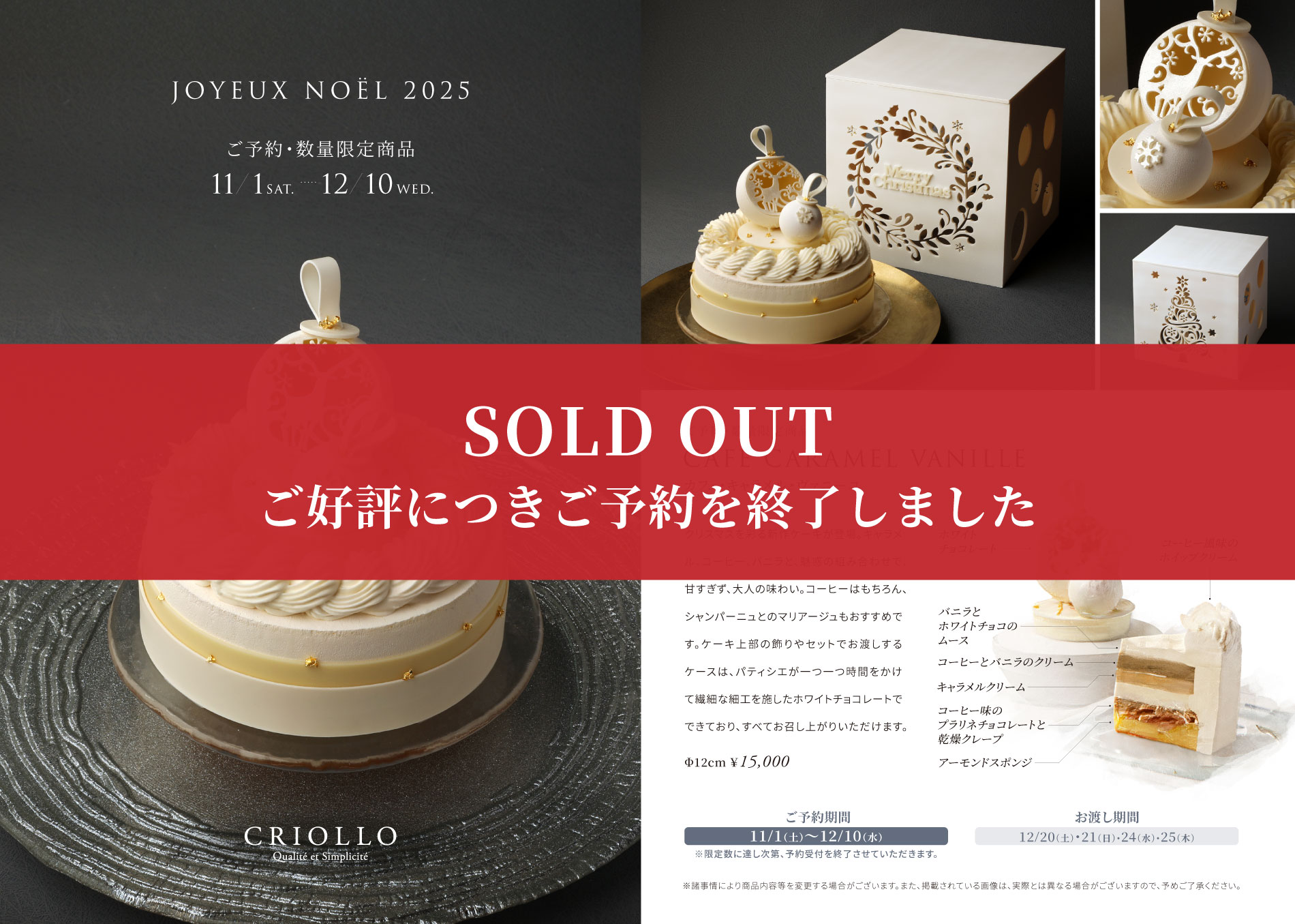 クリオロのケーキと共に、素敵なクリスマスをお楽しみください。