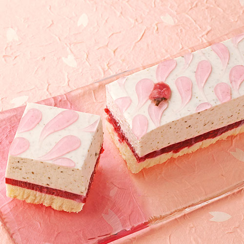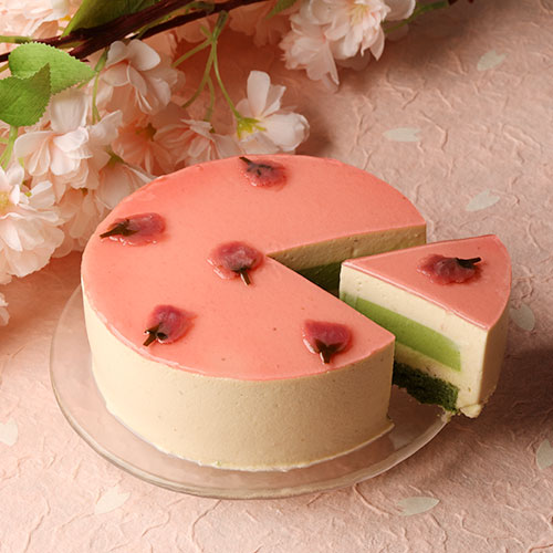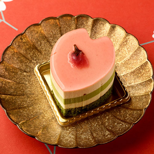 桜ティーと桜の花のシロップ漬けを使用した春を感じる桜のムースと、奥深い味わいの抹茶クリーム、一番下にはアーモンドを使用した抹茶のダコワーズ生地を重ねた和素材を活かしたケーキ。ホールケーキは本店・中目黒店に加え、オンラインショップでもご予約、ご購入が可能です。