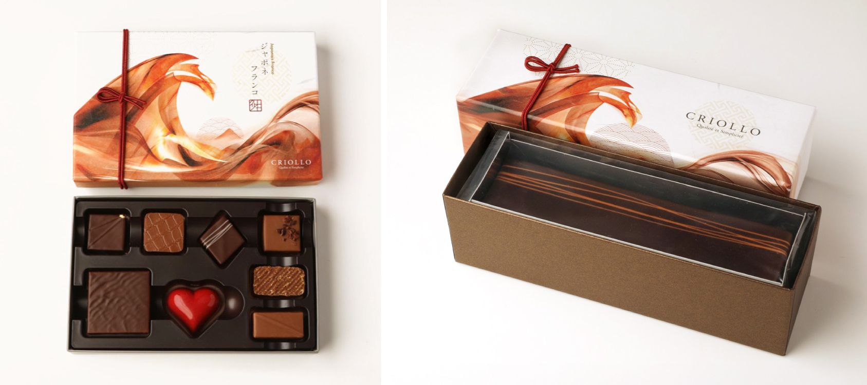 「ジャポネ・フランコ」8粒のうち4粒は、フランス・パリで開催された世界最大級のチョコレートの祭典「サロン・デュ・ショコラ」 内で発表されたショコラ品評会へ出品したボンボンショコラ。品評会では、5回目となる最高評価のゴールドタブレット(金賞)を獲得しました。「最高の出来栄え」「独創性、完璧なバランス、芸術的な美しさ、そして繊細さ。求めるものがすべてここにある。」と称賛されました。