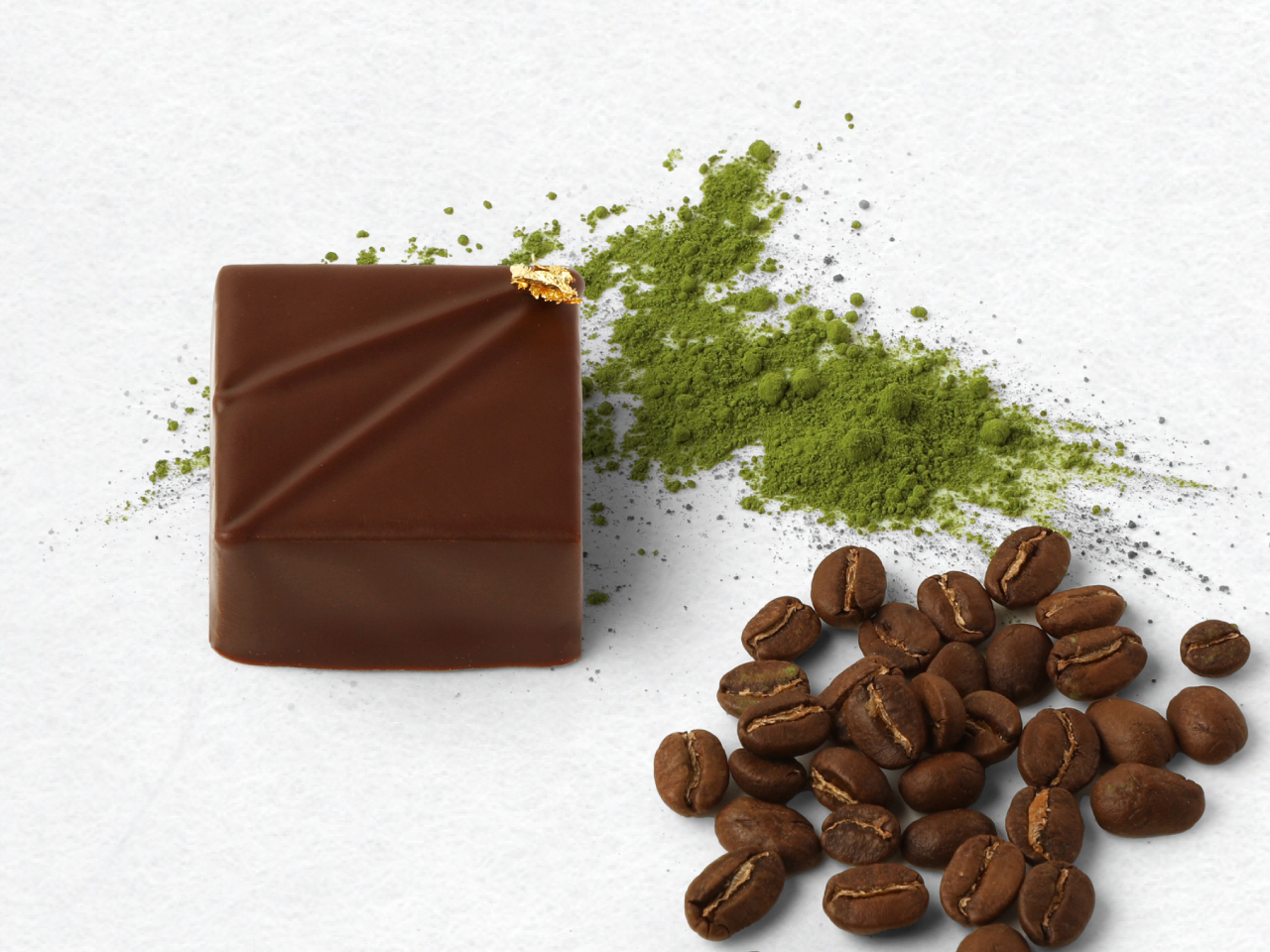 コーヒーハンター川島氏が厳選した深みのあるコーヒー豆の香りと、上品な味わいの愛知県「西尾の抹茶」の風味が交互に広がるユニークな一粒。