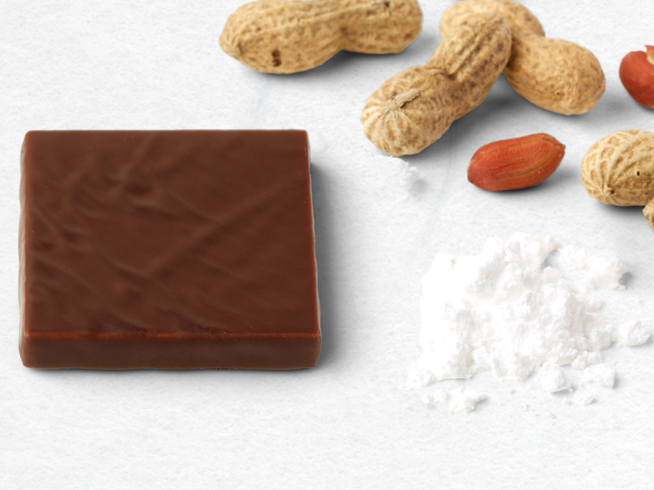 千葉県産のバターピーナッツ、沖縄県産の塩と黒糖を使ったプラリネを、ダークチョコレートでコーティング。ほんのり効いた塩味がピーナッツの甘みをぐっと引き立てています。