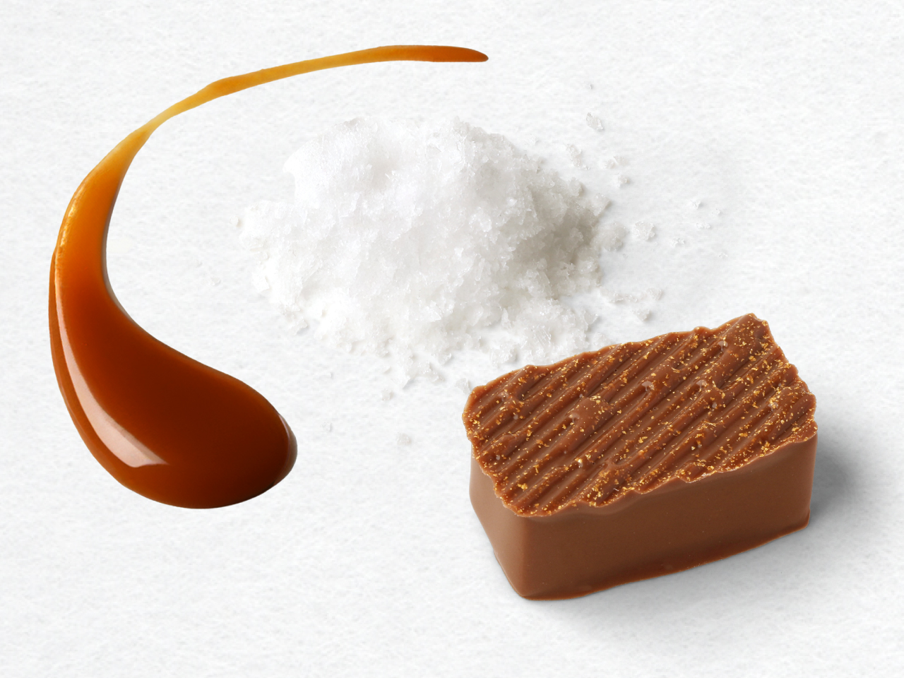 サントスシェフの得意とする、コクとまろやかさが際立つキャラメルに、繊細で上品な味わいの塩を加えました。静岡県河津町で伝統的な製法で作られた「満月の塩」を使用。濃厚でありながらも軽やかな余韻が楽しめる一粒。