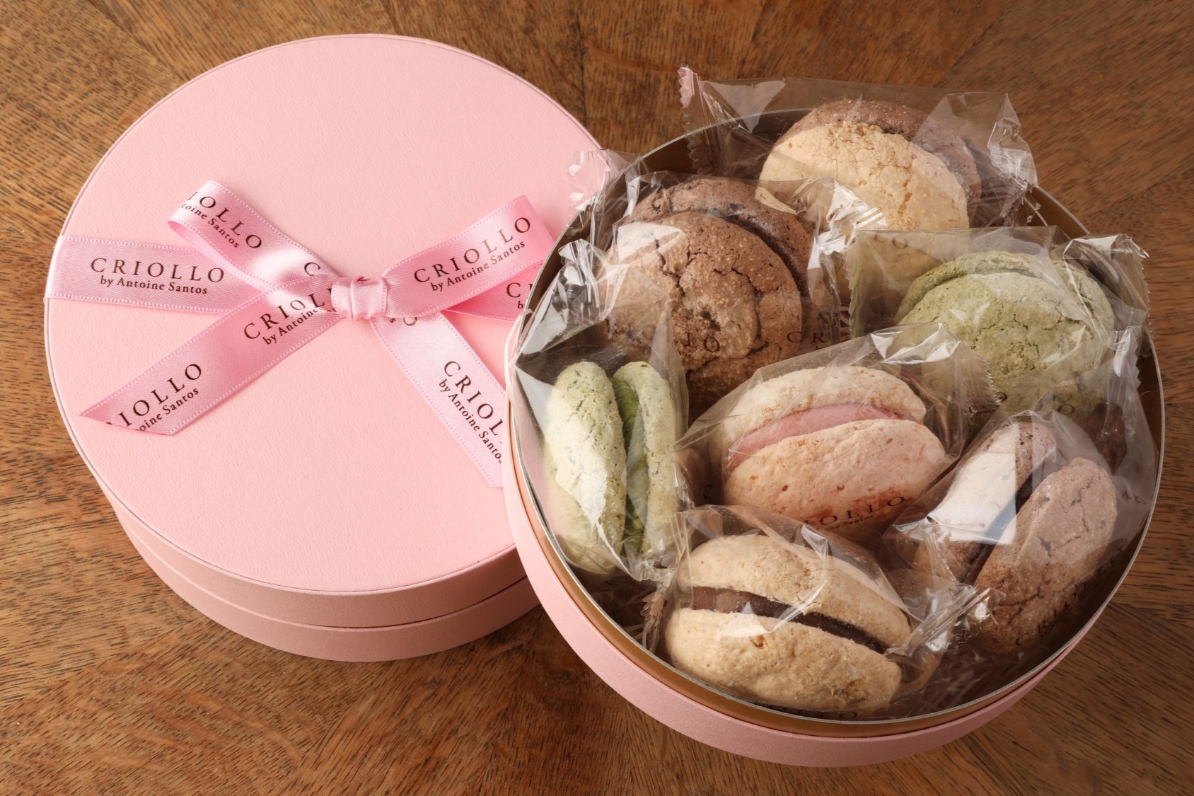 サクッ、ふわっと軽やかな生地に、なめらかなチョコレートクリームをたっぷり挟んだ焼き菓子「ヨーヨーマカロン」は、ころんと愛らしいフォルムと、一口ごとに広がる豊かな味わいが魅力。7個セットは贈り物に人気です。