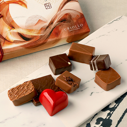 チョコレートはお菓子作りの中でも難しく、何年作っていても勉強することがたくさん。勉強好きなシェフは、常に情報収集!フランスのショコラティエたちと情報交換をしたり実際に自分で体験してチョコレート作りに励んでいます。そんなシェフの飽くなき追及とともに、クリオロのチョコレートは日々進化。昨年よりも良いものができるように、みなさまにもっとおいしいものを届けられるように。そんな想いが溢れる、珠玉のチョコレートをぜひお楽しみください。